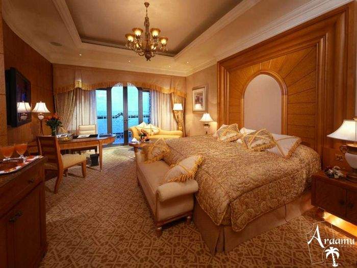 A 302 szoba és 92 lakosztály a luxust, az arab pompát és a modern technikát ötvözi. Egyenlő arányban helyezkednek el a keleti és a nyugati szárnyban. Mindkét szárny tengerpart-kapcsolatos, úszómedencével és fitneszteremmel rendelkezik. Felszereltség: fürdőszoba, zuhany, hajszárító, LCD-tv, telefon, fürdőköntös, DVD-lejátszó, internetcsatlakozás (térítésmentes), klíma, minibár (egyes üdítők fogyasztása térítésmentes), szobai széf és erkély vagy terasz közvetlen, vagy oldalról nyíló tengeri panorámával. 24 órás komornyikszolgálat. Az ár a szobában minden nap friss gyümölcsök és víz fogyasztását is tartalmazza.