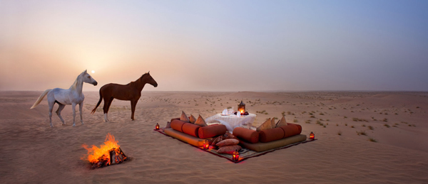 A testi felfrissülés után választhatunk a 4 féle étterem közül, amik hagyományos és nemzetközi ételeket egyaránt kínálnak a vendégeknek. Az egyik étterem kifejezetten híresnek számít ugyanis teljesen szabadtéri, így a vacsorát a fáklyák fénye mellett fogyaszthatjuk el, miközben körülöttünk a végeláthatatlan sivatag látványát élvezhetjük.