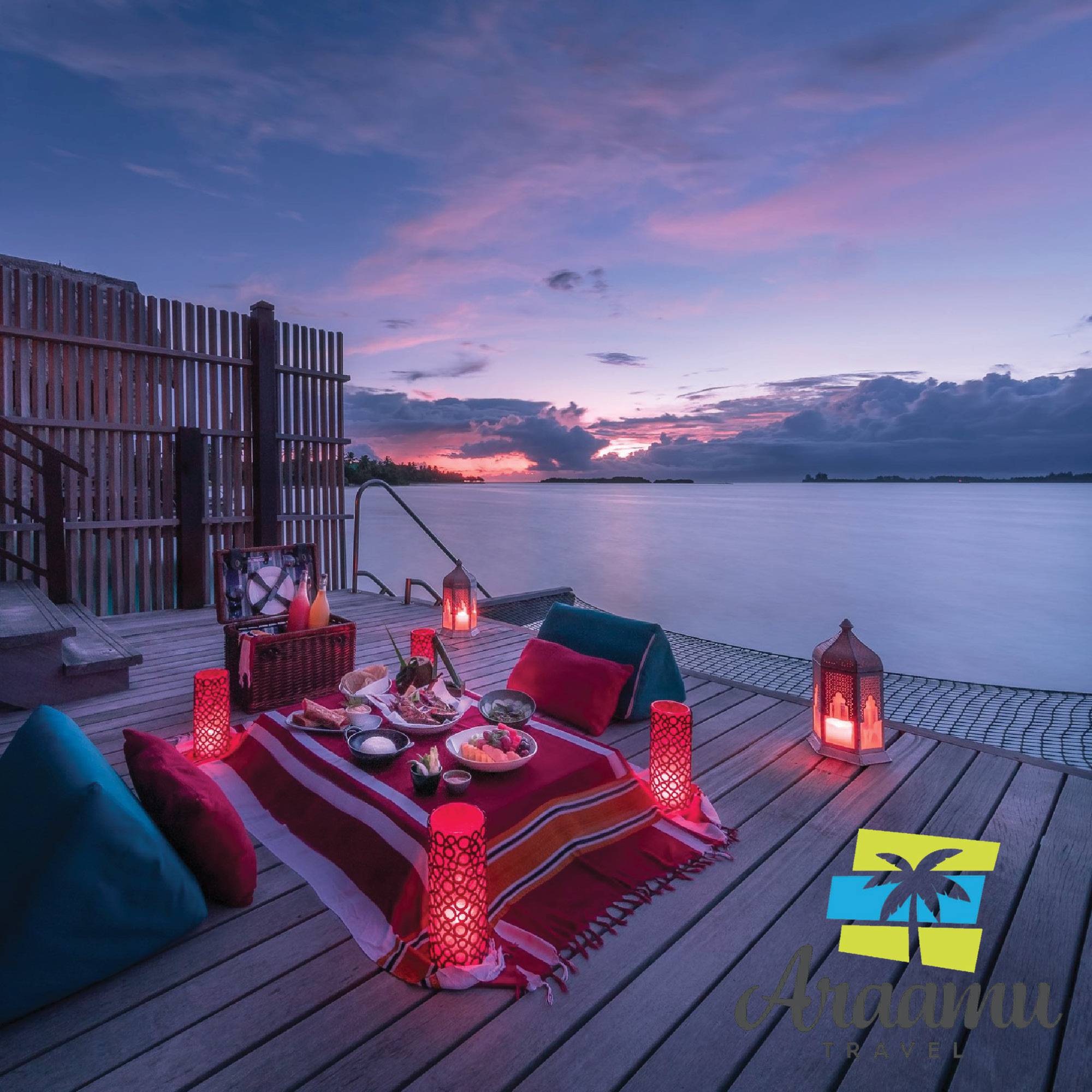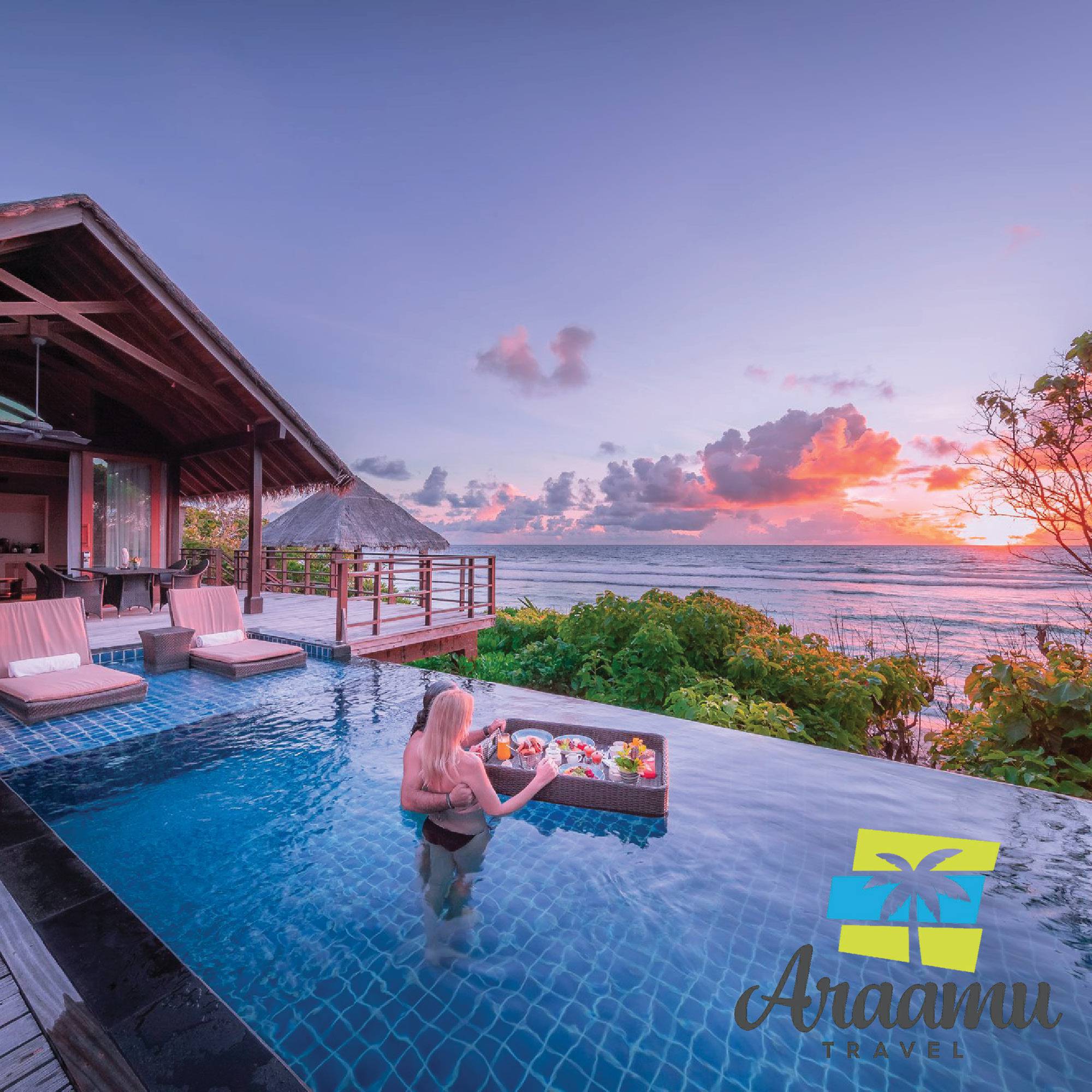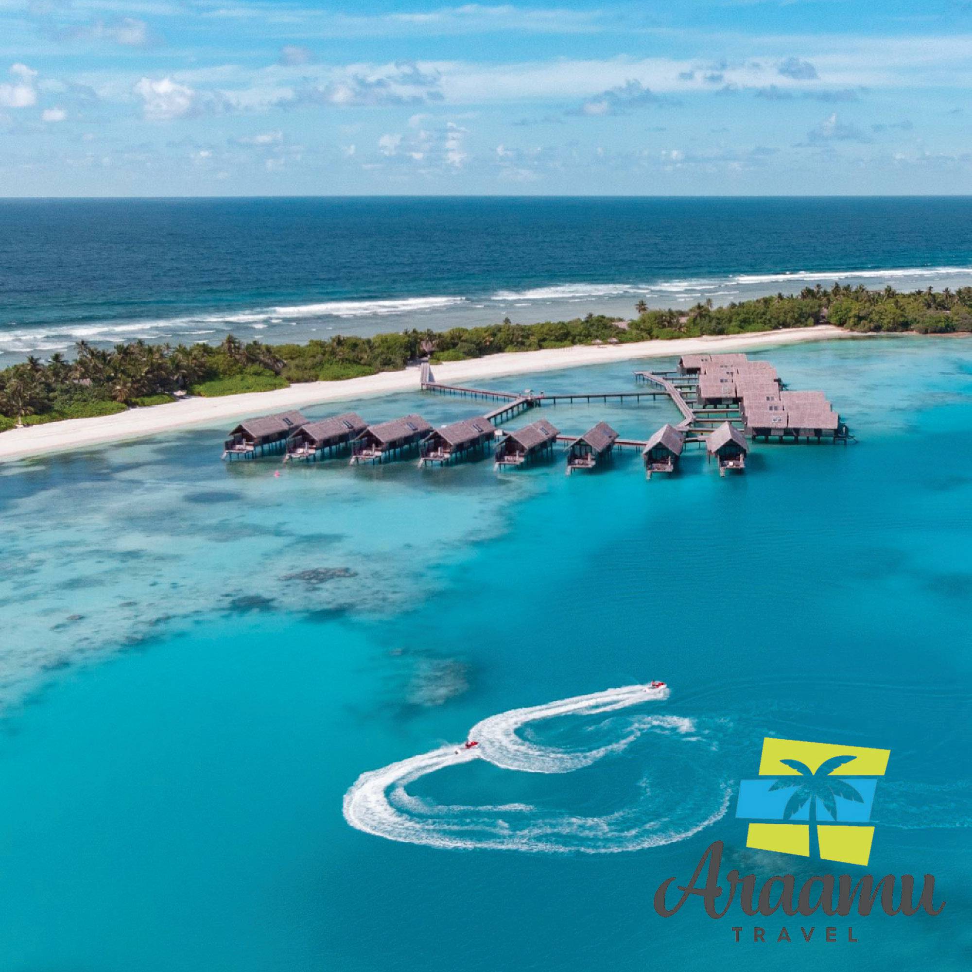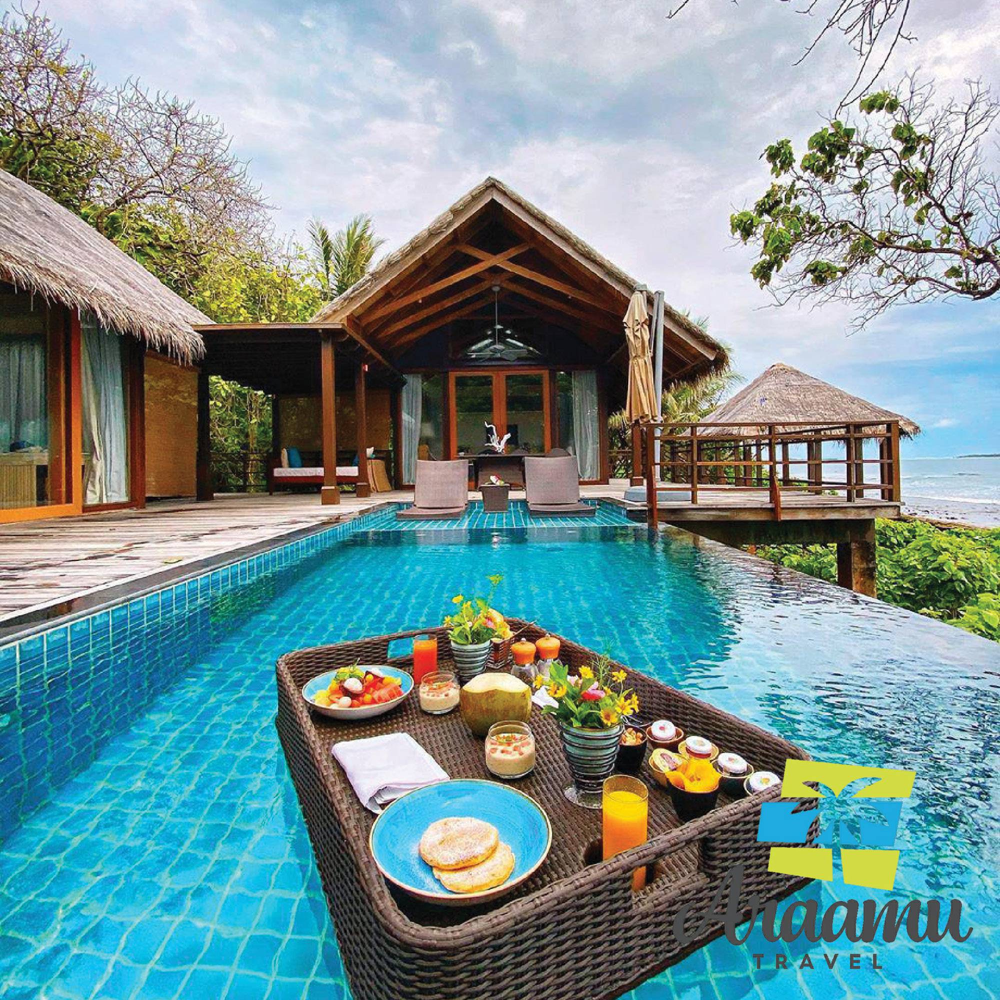 Water Villa (60) kb. 166 nm (kb. 94 nm lakrész): a lagúnába épített, cölöpökön álló, napozóterasszal, nyugágyakkal, létrán közvetlen lejárat a lagúnába.