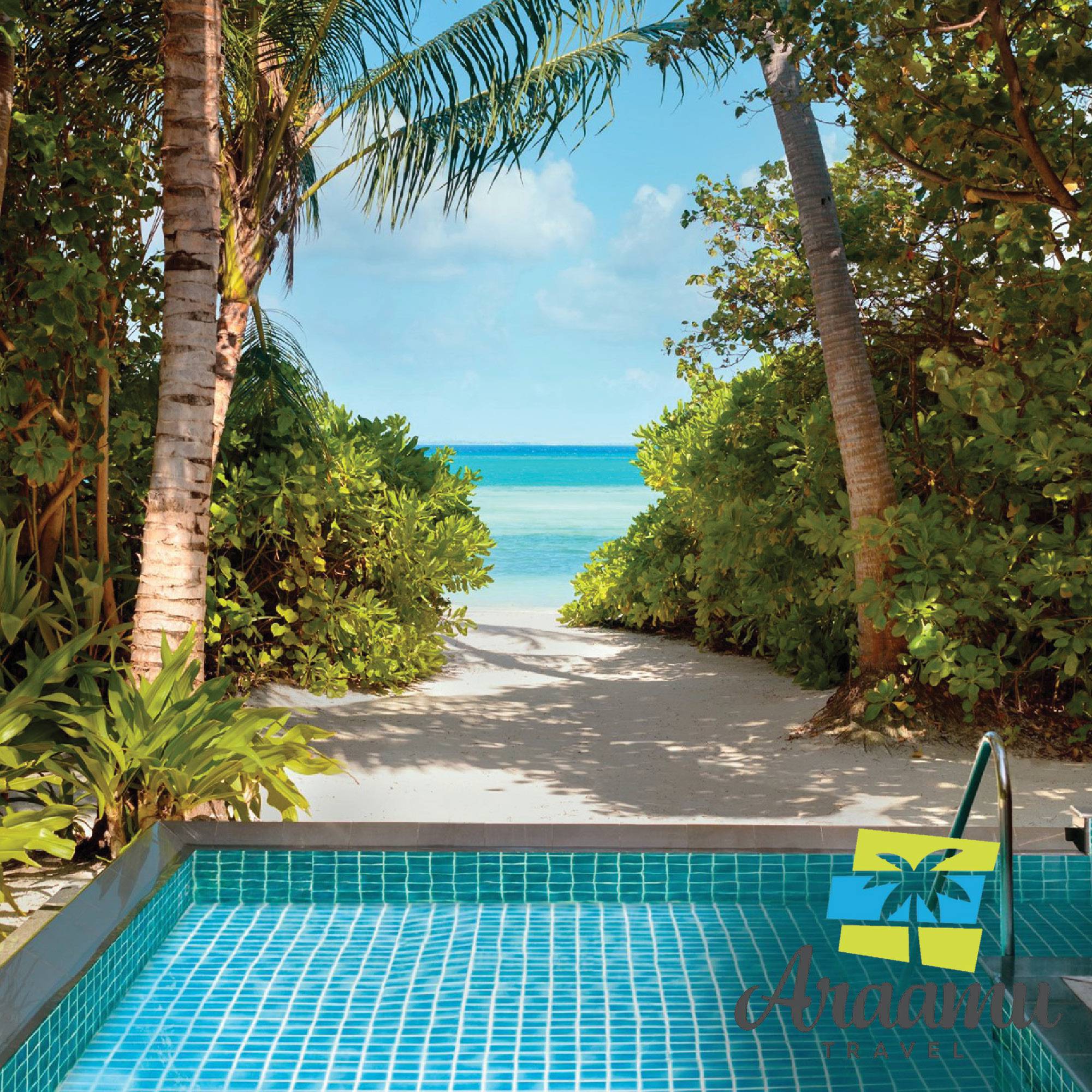 Pool Villa (15) kb. 133 nm (kb. 79 nm lakrész): a sziget peremén, egy trópusi kertben helyezkedik el, medencével. A sziget növényzetére néző.