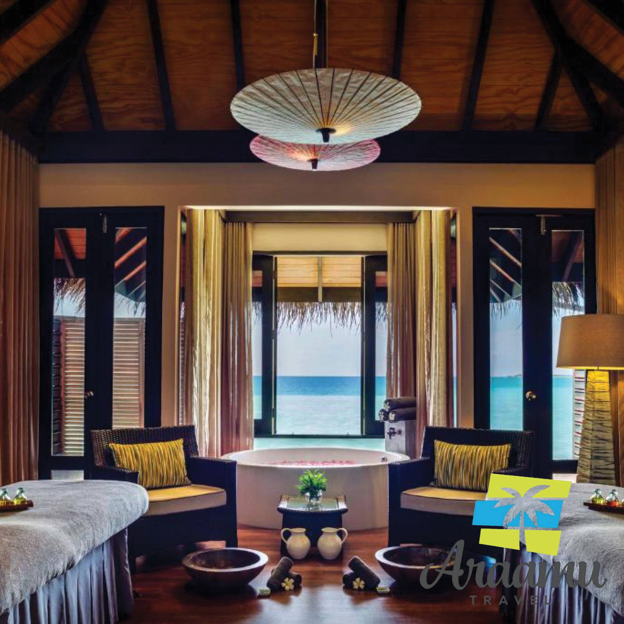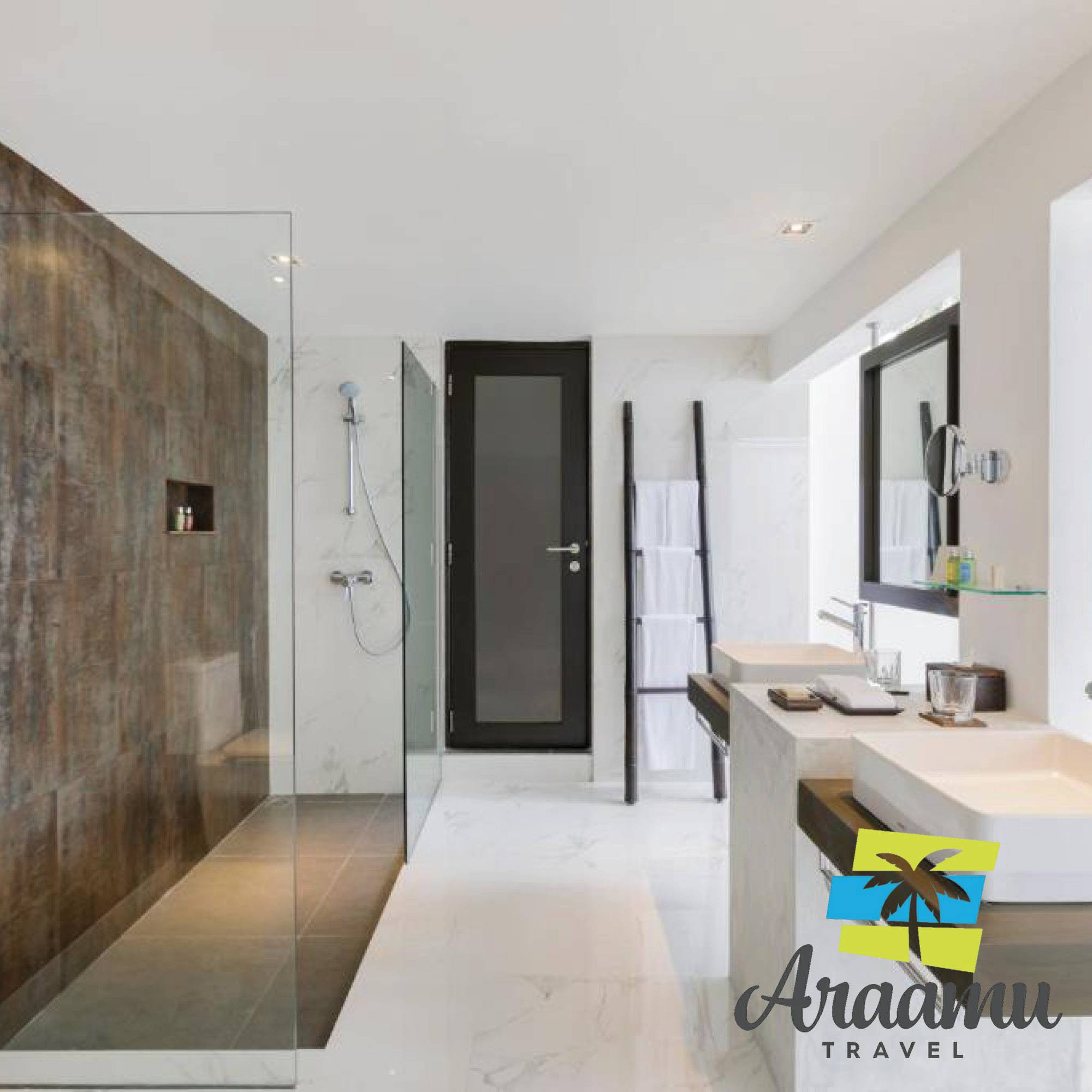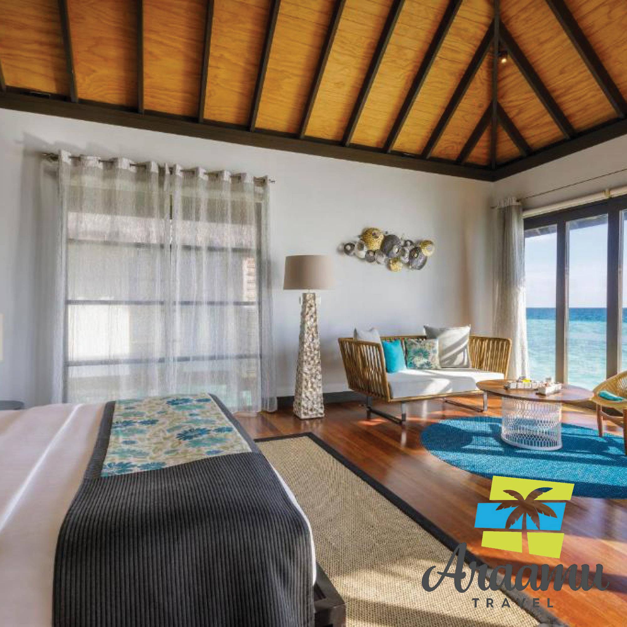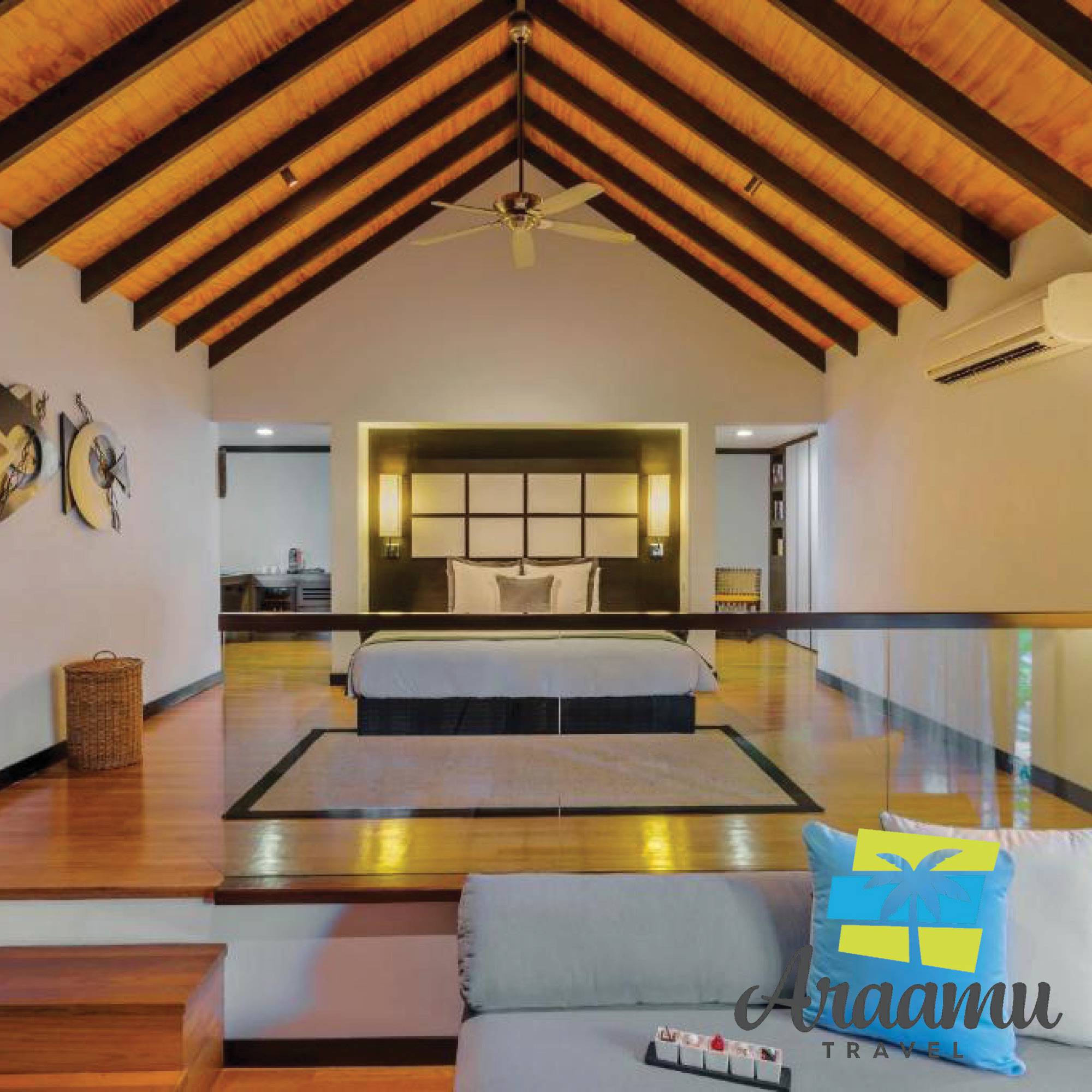 Beach Villa: kb. 96 nm (30), a Deluxe Bungalow-hoz hasonló, egyedül álló, újépítésű, közvetlenül a parton (napfelkelte és naplemente oldalon), tágasabb és elegánsabb berendezéssel, nagyobb fürdőszoba plusz zuhannyal, iPod-állomás és eszpresszógép, borhűtő, közvetlen parti lejáróval. Tengerre néző panorámás.