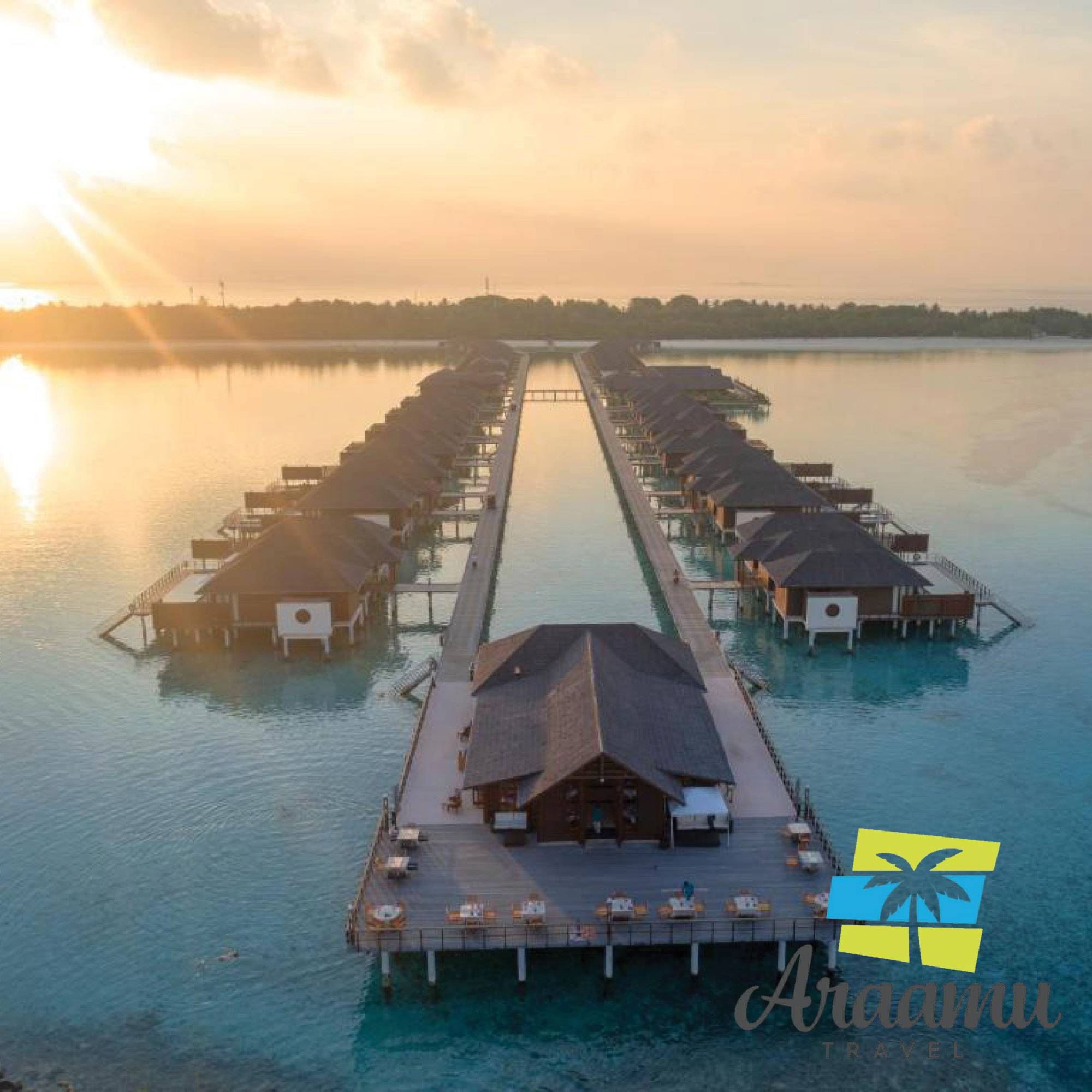 Water villa: 71-80 nm, vízi villa (cölöpökön a lagúna felett, ikerház), kilátással a tengerre, zuhanyzó, kültéri fürdőkád, wc, fürdőköpeny, hajszárító, klíma, ventilátor, minibár térítés ellenében, széf, TV, WiFi, vízforraló, kávéfőző, kávé/tea, terasz (bútorozott), közvetlen lejárat a tengerbe.